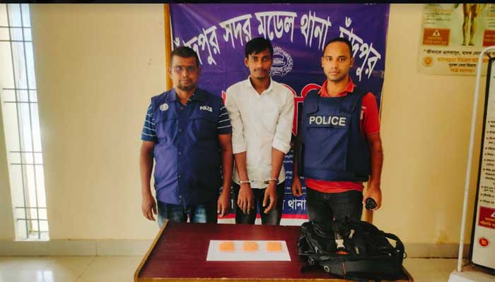 মঙ্গলবার ভোরে চাঁদপুর পৌর ৭নং ওয়ার্ডের নিশি বিল্ডিং সংলগ্ন মুক্তিযোদ্ধা কমপ্লক্সের সামনে থেকে তাকে গ্রেফতার করা হয়।