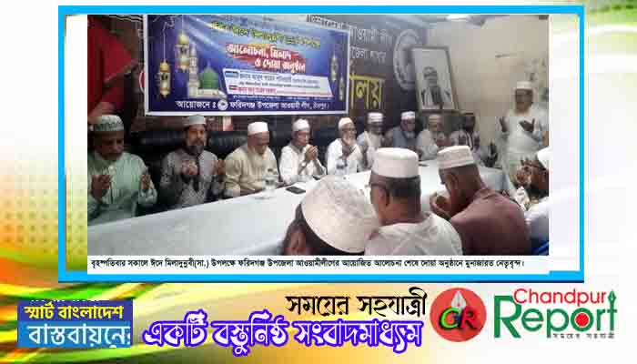 বৃহষ্পতিবার (২৮ সেপ্টম্বর) সকালে ঈদ এ মিলাদুন্নবী (সা.) উপলক্ষে ফরিদগঞ্জ উপজেলা আওয়ামীলীগ আয়োজিত আলোচনা সভা, মিলাদ ও দোয়ার অনুষ্টানের আয়োজন করে।