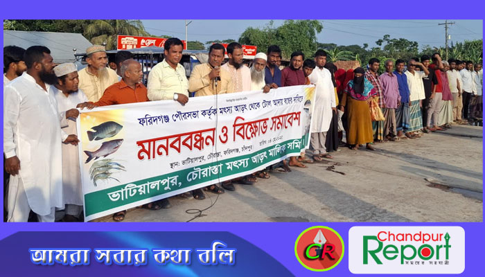 ফরিদগঞ্জে ভাটিয়ালপুর চৌরাস্তার টোল আদায় বন্ধের দাবিতে মানববন্ধন