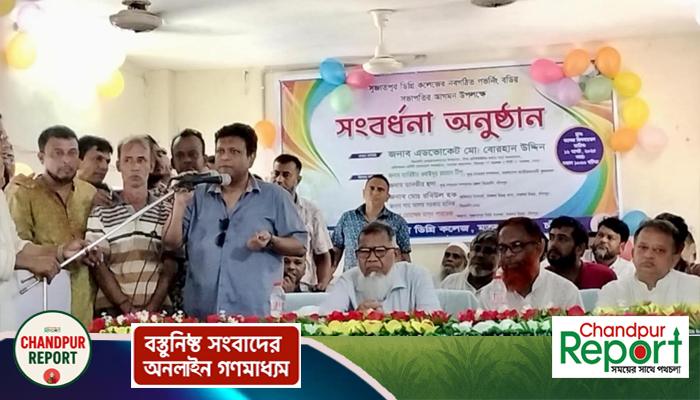 সফিকুল ইসলাম রানা ;  সুজাতপুর ডিগ্রি কলেজের নবগঠিত গভর্নিং বডির সভাপতি, বিএনপি চেয়ারপার্সনের উপদেষ্টা ও এডিশনাল এটর্নি জেনারেল অ্যাডভোকেট মো. বোরহান উদ্দিনকে সংবর্ধনা প্রদান অনুষ্ঠানে চাঁদপুর জেলা বিএনপির যুগ্ম সাধারণ সম্পাদক ও চাঁদপুর-২(মতলব উত্তর-দক্ষিন) সংসদীয় আসনে ধানের শীষ মনোনয়ন প্রত্যাশী তানভীর হুদা বলেন বিএনপি ক্ষমতায় আসলে ‘সৎ ও যোগ্যরা শিক্ষাপ্রতিষ্ঠানের দায়িত্ব পালন করবেন। শনিবার (১৬ আগস্ট) দুপুরে সুজাতপুর কলেজ মিলনায়তনে এক অনুষ্ঠানে কলেজ কর্তৃপক্ষ ফুলেল শুভেচ্ছা ও সংবর্ধনা অনুষ্ঠান আয়োজন করে।
