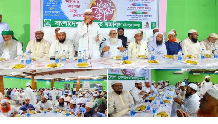 ইফতার পূর্বক দোয়া ও মোনাজাত পরিচালনা করেন জমিয়তে ইসলাম বাংলাদেশ চাঁদপুর জেলা শাখার সভাপতি চাঁদপুর এবং বড়স্টেশন রেলওয়ে মাদানী দারুস সুন্নাহ মাদ্রাসার মুহতামিম মাওলানা মুফতি মো. সিরাজুল ইসলাম।