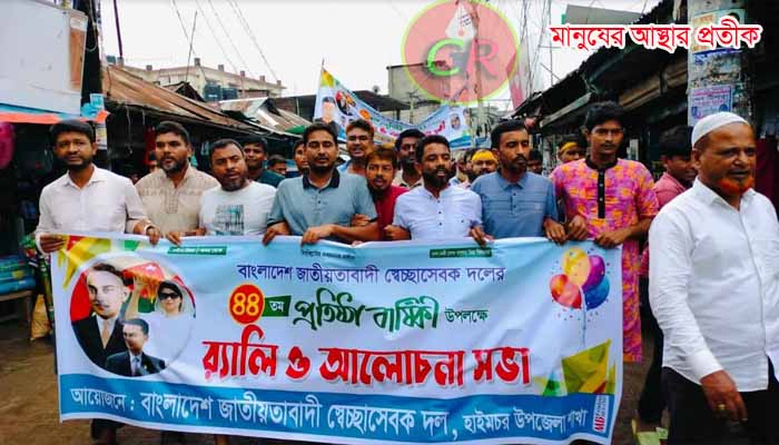 হাইমচর প্রতিনিধি : বর্ণাঢ্য আয়োজনের মধ্য দিয়ে বাংলাদেশ জাতীয়তাবাদী স্বেচ্ছাসেবক দলের 88 তম প্রতিষ্ঠা বার্ষিকী উপলক্ষে হাইমচর উপজেলায় র্যালি ও আলোচনা সভা অনুষ্ঠিত হয়েছে।