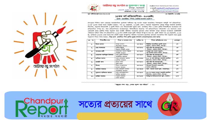 বিশেষ প্রতিনিধিঃ চাঁদপুরের শিক্ষিত তরুণ প্রজন্মের অরাজনৈতিক প্ল্যাটফর্ম অঙ্গীকার বন্ধু সংগঠন ও যুবকল্যাণ সংস্থা এর আয়োজনে বর্ণ প্রতিযোগিতা-২০২৪ এর ফলাফল প্রকাশ করা হয়েছে।