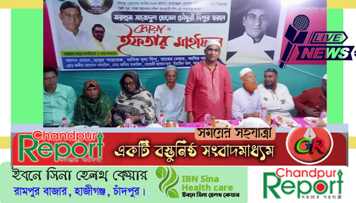 গোলাম নবী খোকনঃ বাংলাদেশ আওয়ামী লীগের সভাপতি মন্ডলীর সদস্য স্বাধীনতা পুরস্কার প্রাপ্ত চাঁদপুর-২ নির্বাচনী আসনের সাংসদ মোফাজ্জল হোসেন চৌধুরী মায়া বীর বিক্রমের জেষ্ঠ্য পুত্র ঢাকা মহানগর দক্ষিণ আওয়ামী লীগের সদস্য মরহুম সাজেদুল হোসেন দীপু চৌধুরীর মাগফেরাত কামনায় বিশেষ দোয়া ও ইফতার মাহফিলের আয়োজন করেছে মতলব দক্ষিণ উপজেলার ৬নং উপাদী দক্ষিণ ইউনিয়ন আওয়ামী যুবলীগ।