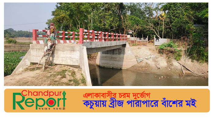 এলাকাবাসীর চরম দুর্ভোগ : কচুয়ায় ব্রীজ পারাপারে বাঁশের মই