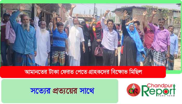 কচুয়া প্রতিনিধি : কচুয়া উপজেলার দারাশাহী তুলপাই বাজারে পল্লী সেবা সমবায় সমিতি লি. গ্রাহকের আমানতের প্রায় ৩ কোটি টাকা নিয়ে উধাও হওয়ার অভিযোগ উঠেছে। এ ঘটনায় রবিবার দুপুরে আমানতের টাকা ফেরত পেতে দারাশাহী তুলপাই বাজারস্থ পল্লী সেবা সমবায় সমিতি লি. এর কার্যালয়ে এসে প্রায় শতাধিক গ্রাহক ভীড় করে এবং টাকা ফেরত পাওয়ার দাবীতে বিক্ষোভ মিছিল করেন।