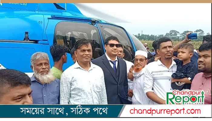 নিজস্ব প্রতিনিধি : সন্তানদের সখ পূরণে সুদুর আমেরিকা থেকে ঢাকায় ফিরে হেলিকপ্টারযোগে সপরিবার নিয়ে ছুটি কাটাতে গ্রামের বাড়িতে আসলেন আমেরিকার বিশিষ্ট রিয়েল স্টেট ব্যবসায়ী বেঙ্গল রিয়েল স্টেট গ্রুপের চেয়ারম্যান মোহাম্মদ জসিম উদ্দিন প্রধান। সোমবার সকাল সাড়ে ১০টায় চাঁদপুরের কচুয়া উপজেলার তেগুরিয়া উচ্চ বিদ্যালয় সংলগ্ন এলাকায় ইমপ্রেস এভিয়েশন লিমিটেড বেসরকারি হেলিকপ্টারে পরিবার নিয়ে অবতরণ করেন তিনি।
