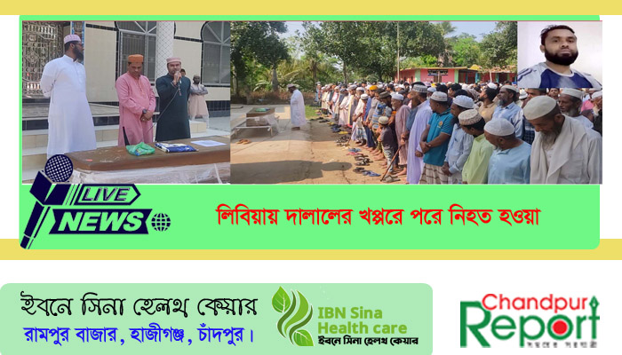 কচুয়া প্রতিনিধি : লিবিয়ার বেনগাজী শহরের আরবান এলাকায় দালালের খপ্পরে আটকে থাকা চাঁদপুরের কচুয়ার সফিবাদ গ্রামের শ্রমিক ইব্রাহীম ফকিরের দাফন সম্পন্ন হয়েছে। রবিবার বাদ জোহর সফিবাদ ফোরকানিয়া ও এতিমখানা মাদ্রাসা মাঠে মরহুমের জানাযার নামাজ অনুষ্ঠিত হয়।