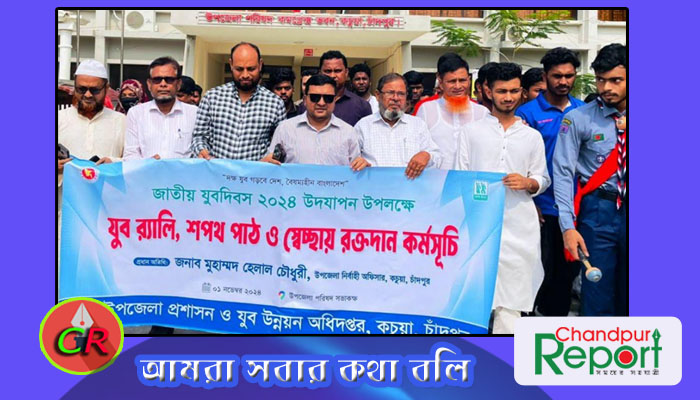 শুক্রবার এ উপলক্ষে উপজেলা প্রশাসন ও যুব উন্নয়ন অধিদপ্তরের আয়োজনে উপজেলা পরিষদ চত্তর এলাকায় বর্ণাঢ্য র্যালী বের করা হয়। এসময় উপজেলা নির্বাহী অফিসার মোহাম্মদ হেলাল চৌধুরী, উপজেলা প্রকৌশলী আব্দুল আলীম লিটন, উপজেলা প্রকল্প বাস্তবায়ন অফিসার মো. রাকিবুল ইসলাম, কচুয়া প্রেসক্লাবের সভাপতি আতাউল করিম, সাধারন সম্পাদক এমদাদ উল্লাহ, সাংগঠনিক সম্পাদক মো. সাইফুল মিজান প্রমুখ।