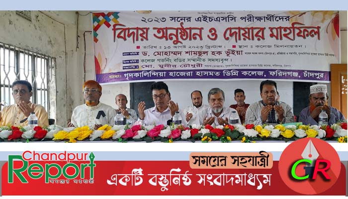 চাঁদপুরের ফরিদগঞ্জে গৃদকালিন্দিয়া হাজেরা হাসমত ডিগ্রি কলেজে ২০২৩ সালের এইচএসসি পরীক্ষার্থীদের বিদায় উপলক্ষে মিলাদ ও দোয়া অনুষ্ঠান অনুষ্ঠিত হয়েছে।