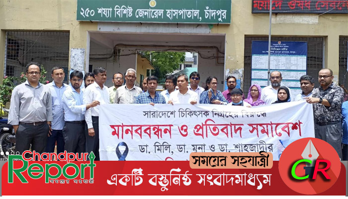 গ্রেফতার চিকিৎসকদের মুক্তির দাবিতে চাঁদপুরে মানববন্ধন
