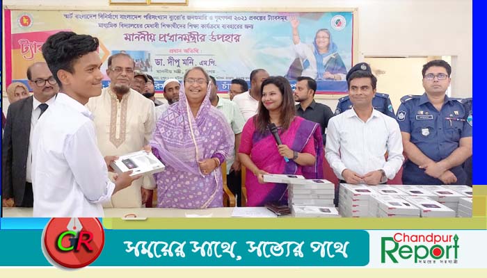 চাঁদপুরে মাধ্যমিক বিদ্যালয়ের মেধাবী শিক্ষার্থীদের মাঝে ট্যাব বিতরণ