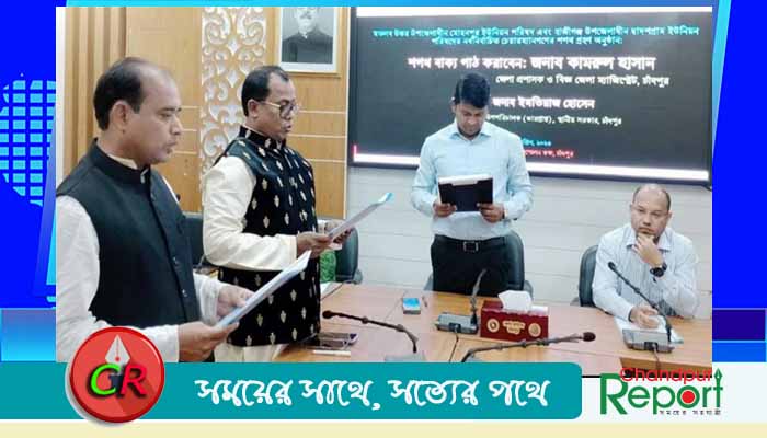বুধবার (১২ এপ্রিল) দুপুরে চাঁদপুর জেলা প্রশাসক সম্মেলন কক্ষে চেয়ারম্যানদের শপথ বাক্য পাঠ করান জেলা প্রশাসক (ডিসি) কামরুল হাসান।