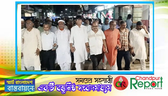 সবশেষে বক্তারা জেলাবাসীর প্রতি আহবান জানিয়ে চাঁদপুরের উন্নয়নের ধারাবাহিকতা অব্যাহত রাখতে আগামী জাতীয় সংসদ নির্বাচনে নৌকা মার্কার প্রার্থীকে বিজয়ী করতে জেলাবাসীর প্রতি আহ্বান জানান।