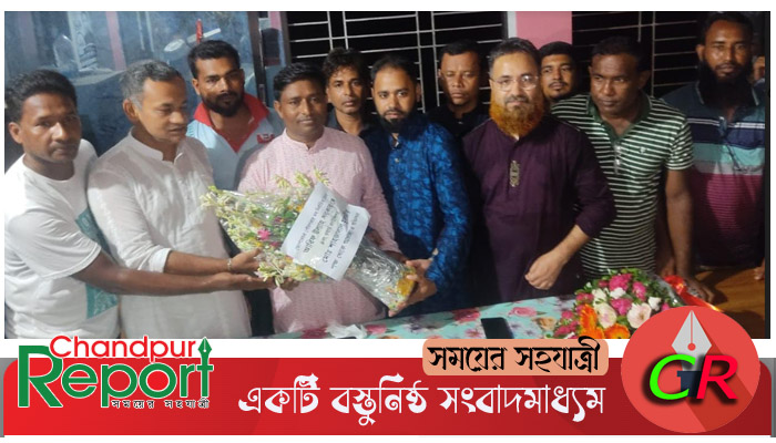 চাঁদপুরের মতলব উত্তর উপজেলার ছেংগারচর পৌরসভার নবনির্বাচিত মেয়র লায়ন আরিফ উল্লাহ সরকারকে ফুল দিয়ে বরন করে নিলেন ৪ নং ওয়ার্ডের নবনির্বাচিত কাউন্সিলর শাহজালাল মুফতি। গত ১৯ জুলাই বুধবার সন্ধ্যায় পৌর যুবলীগ কার্যালয়ে নবনির্বাচিত মেয়রকে বরন করে নেন।