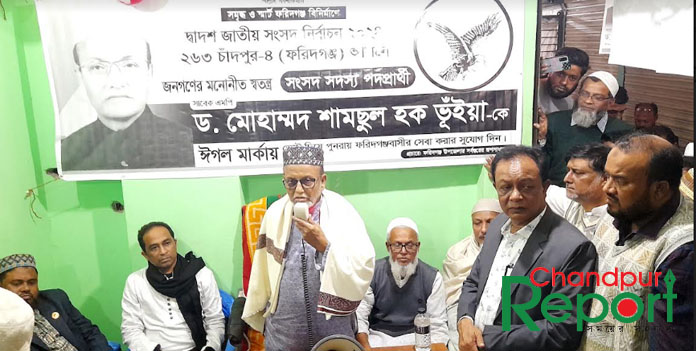 চাঁদপুা-৩(চাঁদপুর সদর ও হাইমচর) এবং চাঁদপুর-৪(ফরিদগঞ্জ) আসনের সংসদ সদস্য পদে স্বতন্ত্র প্রার্থী আওয়ামীরীগের জাতীয় পরিষদের সদস্য, চাঁদপুর জেলা আওয়ামীলীগের সাবেক সভাপতি ও চাঁদপুর-৪ ফরিদগঞ্জ আসনের সাবেক এমপি ড. মোহাম্মদ শামছুল হক ভূঁইয়া (প্রতীক-ঈগল) বরেছেন, দ্বাদশ সংসদ নির্বাচন অংশগ্রহণমূলক এবং ভোটার উপস্থিতির জন্য নির্বাচন নয়, মন্ত্রী এমপিদের জনপ্রিয়তা যাচাইয়ের আদালত।