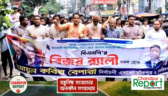 ফরিদগঞ্জ অফিস : বাংলাদেশ জাতীয়তাবাদী সাংস্কৃতিক দলের কেন্দ্রীয় কমিটির সভাপতি ও চাঁদপুর-৪ ফরিদগঞ্জ আসনের বিএনপির মনোনয়ন প্রত্যাশী হুমায়ুন কবির বেপারীর সমর্থনে গণঅভ্যুত্থান দিবস উপলক্ষে বিজয় মিছিল অনুষ্ঠিত হয়েছে। মঙ্গলবার (৫ আগস্ট ২০২৫) ঢাকায় অনুষ্ঠিত এই বিজয় মিছিলে চাঁদপুর ও ফরিদগঞ্জ উপজেলার জাতীয়তাবাদী সংস্কৃতিক দলের নেতৃবৃন্দ ছাড়াও বিএনপি ও অঙ্গসংগঠনের নেতাকর্মীরা উপস্থিত ছিলেন।