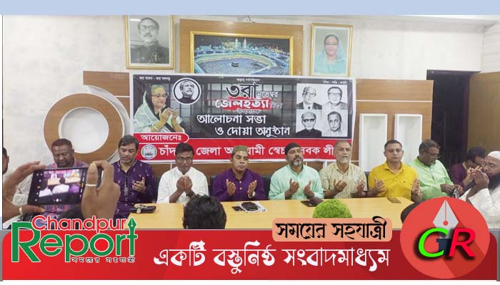 জেল হত্যা দিবসে চাঁদপুর জেলা আওয়ামী স্বেচ্ছাসেবক লীগের আলোচনাসভা ও দোয়া