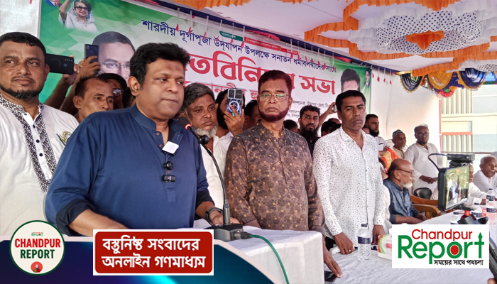 শুক্রবার (২৬ সেপ্টেম্বর) বিকালে চাঁদপুরের মতলব উত্তর উপজেলার মমরুজকান্দি সপ্তগ্রাম উচ্চ বিদ্যালয় প্রাঙ্গণে শারদীয় দুর্গাপূজা উদযাপন উপলক্ষে সনাতন ধর্মাবলম্বীদের সাথে আয়োজিত মতবিনিময় সভায় প্রধান অতিথির বক্তব্যে তিনি এসব কথা বলেন।