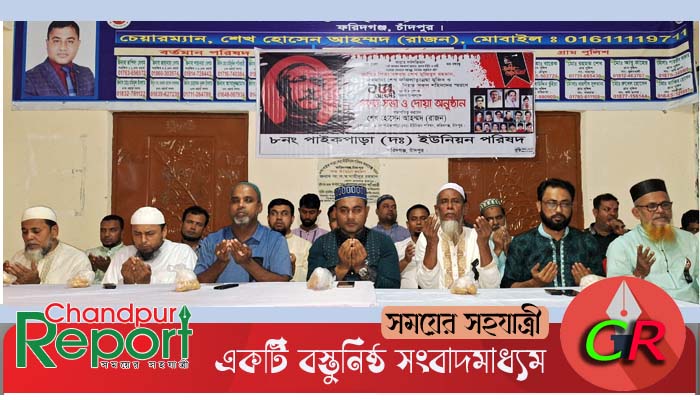 ফরিদগঞ্জ উপজেলার ৮নং পাইকপাড়া দক্ষিণ ইউনিয়ন পরিষদের আয়োজনে স্বাধীনতার মহান স্থপতি জাতির পিতা বঙ্গবন্ধু শেখ মুজিবুর রহমানের ৪৮তম শাহাদাৎ বার্ষিকী ও জাতীয় শোক দিবস উপলক্ষে পবিত্র কোরআন খতম, দোয়া ও মিলাদ মাহফিল অনুষ্ঠিত হয়।