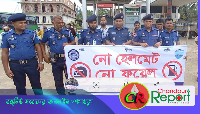 ফরিদগঞ্জে পুলিশের ‘নো হেলমেট নো ফুয়েল’ বাস্তবায়নে সচেতনতামূলক র্যালি