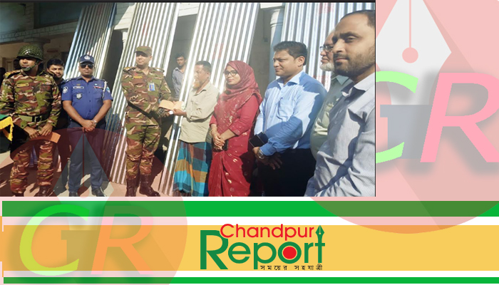 ফরিদগঞ্জে সেনাবাহিনী কর্তৃক বন্যার্তদের মাঝে গৃহ নির্মাণ সামগ্রী ও ত্রাণ বিতরণ