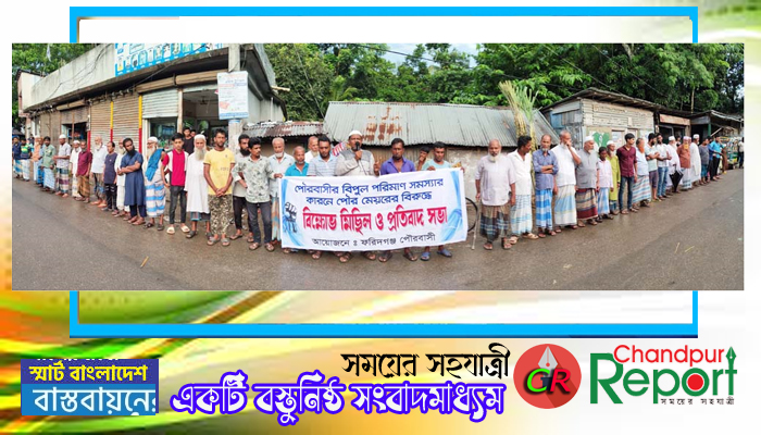 ফরিদগঞ্জ পৌরসভায় নানান অনিয়মের প্রতিবাদে মানববন্ধন
