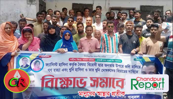 ফরিদগঞ্জ শেখ হাসিনারসহ দোষীদের বিচারের দাবীতে যুবদলের বিক্ষোভ সমাবেশ