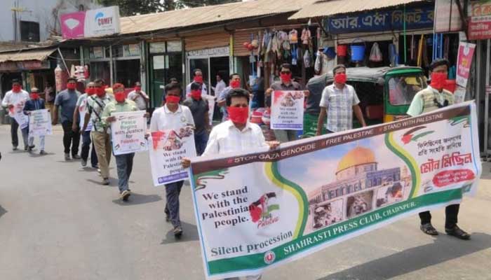 ফিলিস্তিনে হামলার প্রতিবাদে শাহরাস্তি প্রেসক্লাবের মৌন মিছিল