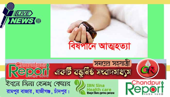 মতলব উত্তর প্রতিনিধি : মতলব উত্তর থানাধীন গজরা ইউনিয়নের পশ্চিম রায়েরদিয়া গ্রামের প্রধান বাড়ির মৃত চান মিয়া প্রধানের মেয়ে চুমকি বেগম (৩০) বিষপানে আত্মহত্যা করেছেন।