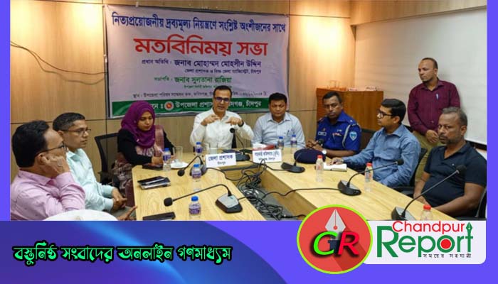 নিত্য প্রয়োজনীয় দ্রব্য মূল্য নিয়স্ত্রণে চাঁদপুরের ফরিদগঞ্জে অংশীজনদের সাথে মতিবিনিমিয় সভা অনুষ্ঠিত হয়েছে। মঙ্গলবার (২২অক্টোবর) দুপুরে উপজেলা পরিষদ মিলনায়তনে ইউএনও সুলতানা রাজিয়া’র সভাপতিত্বে প্রধান অতিথির বক্তব্য রাখেন চাঁদপুর জেলা প্রশাসক মোহাম্মদ মোহসীন উদ্দিন।