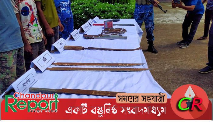চাঁদপুর জেলার মতলবে ১টি দুইনলা বন্দুক, বিভিন্ন ধরনের দেশীয় অস্ত্র ও বিপুল পরিমাণ অস্ত্র তৈরির সরঞ্জামাদিসহ ৩ জন ডাকাত দলের সদস্যকে আটক করেছে কোস্টগার্ড।
