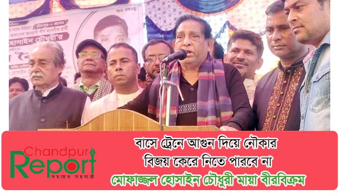 আসন্ন দ্বাদশ জাতীয় সংসদ নির্বাচনে চাঁদপুর-২ আসনে আওয়ামী লীগের মনোনীত নৌকার প্রার্থী, আওয়ামী লীগের প্রেসিডিয়াম সদস্য ও সাবেক মন্ত্রী মোফাজ্জল হোসেন চৌধুরী মায়া বীরবিক্রম নির্বাচনী উঠান বৈঠকে এ কথা বলেন শনিবার ২৩ ডিসেম্বর সকালে বাগানবাড়ি ইউনিয়নের কালীর বাজার উঠান বৈঠক তিনি আরো বলেন, বিএনপি জামাত সন্ত্রাসীরা নির্বাচন বানচাল করতে নানা স্বরযন্ত্র করছে। বাসে আগুন, ট্রেনে আগুন দিয়ে মানুষ হত্যা করছে নৌকার বিজয় কেরে নিতে পারবে না। সুষ্ঠু ধারার কোন রাজনৈতিক দল এই কাজ করতে পারে না। শেখ হাসিনা সরকার উন্নয়নের সরকার। শেখ হাসিনার সরকার বারবার দরকার। কারন আওয়ামী লীগ ক্ষমতায় থাকলে দেশে শান্তি শৃঙ্খলা বজায় থাকে ও সাধারণ মানুষের ভাগ্যর উন্নয়ন ঘটে।