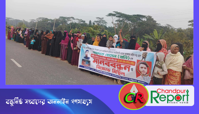 মতলব উত্তরের শাহাদাত রনির খুনির ফাঁসির দাবি : এলাকাবাসীর মানববন্ধন