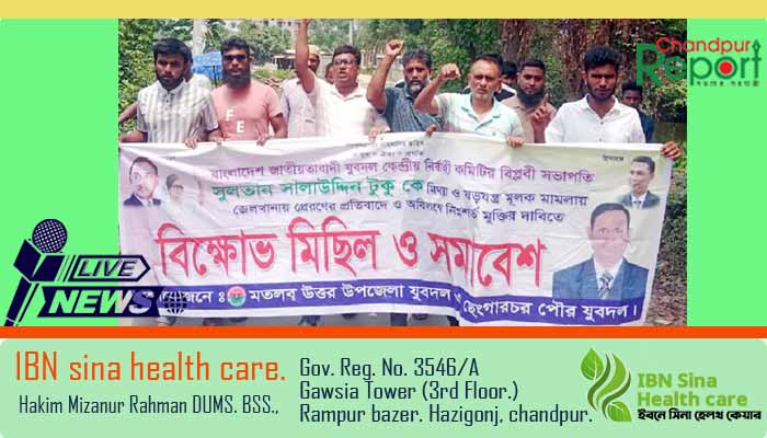 মতলব উত্তরে কেন্দ্রীয় যুবদলের সভাপতিকে কারাগারে প্রেরণের প্রতিবাদে বিক্ষোভ মিছিল