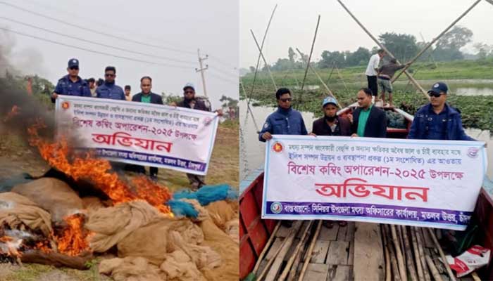 সফিকুল ইসলাম রানা : মতলব উত্তর উপজেলায় ধনাগোদা নদীতে বিশেষ কম্বিং অপারেশনে অবৈধ জাগ উচ্ছেদ অবৈধ জাগ উচ্ছেদ করা হয়েছে। বৃহস্পতিবার (৩০ জানুয়ারি) সকালে ধনাগোদা নদীর শিবপুর থেকে লক্ষ্মীপুর অঞ্চলে উপজেলা সিনিয়র মৎস্য কর্মকর্তা বিজয় কুমার দাসের নেতৃত্বে বিশেষ কম্বিং অপারেশন পরিচালনা করে নদীর অবৈধ ১২টি জাগ, ২টি মশারী জাল ও ২টি বেহুন্দি জব্দ করে পুড়িয়ে বিনষ্ট করা হয়।