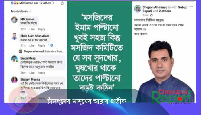 সাইফুদ্দিন বলেন, পৌর কাউন্সিলর সবুজ বেপারী গেলো নির্বাচনে প্রতিদ্বন্দ্বী ছিল। তার যোগসাজশে আমাদের বিরুদ্ধে এই সিদ্ধান্ত নেন তারা। আমি ফেসবুকে কারো নাম নিয়ে পোস্ট করিনি। পোস্টে ছিল- ‘মসজিদের ইমাম পাল্টানো যায়, ঘুষখোর আর সুদখোর পাল্টানো যায় না।’