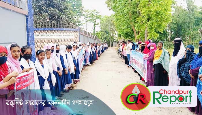 মতলব উত্তরে বিদ্যালয়ের নিরাপত্তা প্রহরীর উপর সন্ত্রাসী হামলার প্রতিবাদে মানববন্ধন