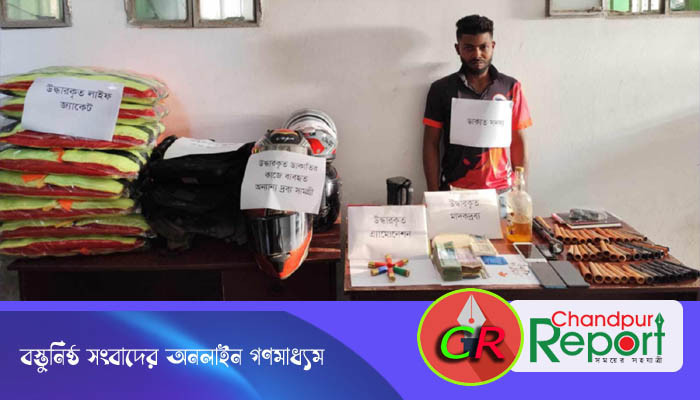 ০৮ জানুয়ারী ২০২৫ ইং রোজ শনিবার দুপুর ১ টা ১৬ মিনিটের সময় মতলব উত্তর উপজেলায় বেলতলী লঞ্চ ঘাট এলাকায় স্থানীয় গোপন সংবাদের ভিত্তিত্বে চাঁদপুর সদর আর্মি ক্যাম্প হতে ডাকাত ও মাদক ব্যবসায়ীদের বিরুদ্ধে মতলব উত্তরে বেলতলী লঞ্চ ঘাট এলাকায় যৌথ অভিযান পরিচালনা করে নাজমুল (২১,) নামে ০১ জন ডাকাত কে গ্রেফতার করা হয়। গ্রেফতার কৃত ব্যাক্তির কাছ থেকে ০৬টি শর্ট গান এর কার্তুজ, ১০পিস ইয়াবা, নগদ ২১৬৫০০/- টাকা, ০৬ টি বুলেট গ্রুপ জ্যাকেট, ০৮টি লাইফ জ্যাকেট, ১ টি গাঁজা মাপার মেশিন, ৪০ পিচ কলকি, ০২ টি লাইট, ০৪টি হেমলেট ০১ টি লেজার লাইট, ০১ টি চাঁদা সংগ্রহের বই,, ০৪ টি মোবাইল এবং ১ টি বিদেশী মদের বোতল উদ্ধার করা হয়।