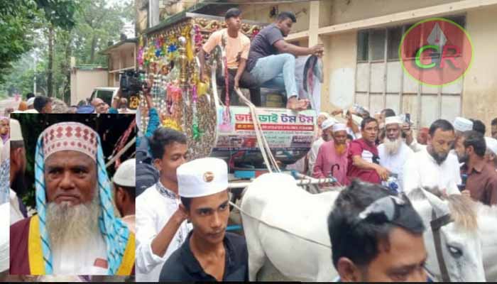 এর আগে সকালে মসজিদের বিদায়ী ইমাম মাওলানা আব্দুল খালেক এর হাতে এলাকাবাসীর পক্ষ থেকে নগদ টাকা তুলে দেন মুসল্লিরা। এছাড়াও শত শত মুসল্লির উপস্থিতে ঘোড়ার গাড়িতে ওঠানো হয় ইমামকে। সামনে-পেছনে মোটরসাইকেলের বহর নিয়ে ইসলামের বিভিন্ন স্লোগানে স্লোগানে ইমামের নিজ বাড়িতে পৌঁছে দিয়ে আসা হয়।