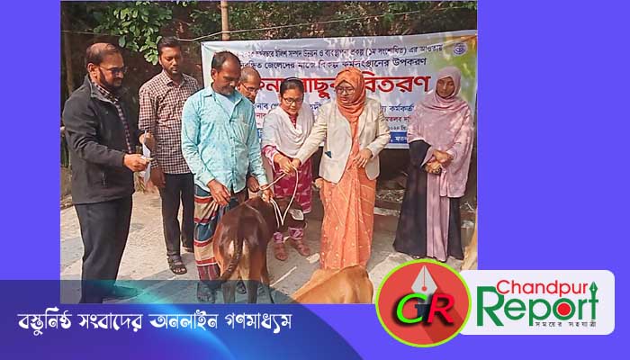মতলব দক্ষিণে জেলেদের মাঝে বকনা বাছুর বিতরণ