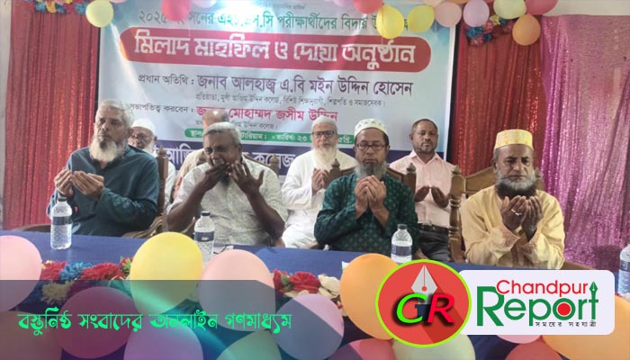 গোলাম নবী খোকনঃ চাঁদপুরের মতলব উত্তর উপজেলার ফতেপুর পূর্ব ইউনিয়নে অবস্থিত মুন্সি আজিমউদ্দিন কলেজ এর ২০২৫ ইং সনের এইচএসসি পরীক্ষার্থীদের বিদায় -আলোচনা ও মিলাদ অনুষ্ঠানে কলেজের অধ্যক্ষ জসিমউদ্দিনের সভা প্রধানে কলেজের সিনিয়র প্রভাষক আলামিনের উপস্থাপনায় বিশেষ অতিথির বক্তব্যে রাখেন জমিলা খাতুন উচ্চ বিদ্যালয়ের প্রধান শিক্ষক মনিরুজ্জামান মোহন, কলেজ গর্ভনিংবডির সাবেক সদস্য গিয়াসউদ্দিন, সাবেক সদস্য বোরহানউদ্দিন প্রধান, জমিলা খাতুন উচ্চ বিদ্যালয়ের সহকারী শিক্ষক আব্দুল ছাত্তার, সাংবাদিক একেএম গোলাম নবী খোকন, মুন্সী আজিমউদ্দিন কলেজের প্রভাষক আলমগীর হোসেন তালুকদার, প্রভাষক শরীফুল আলম, পরীক্ষার্থী আব্দুর রহমান হাসিব, পরীক্ষার্থী সীমা আক্তার,মানপত্র পাঠ করেন একাদশ শ্রেণির ছাত্র মোঃ আবু সাইদ প্রমুখ।