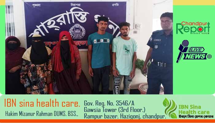 থানা পুলিশ জানায়, ঘটনার খবর পেয়ে অফিসার ইনচার্জ (ওসি) মোহাম্মদ আলমগীর হোসেন তাৎক্ষণিক উপপরিদর্শক (এসআই) নুরুল আনোয়ার সঙ্গীয় ফোর্সকে ঘটনাস্থলে পাঠান। ওই সময় পুলিশ পাশ্ববর্তী হাজিগঞ্জ উপজেলার গন্ধর্ব্যপুর চরের বাড়ির লাল মিয়ার পুত্র মোঃ ইলিয়াস মিয়া (২১), একই বাড়ির আইয়ুব আলীর পুত্র দেলোয়ার হোসেন (২৪), চাঁদপুর পুরান বাজার এলাকার জাকির হোসেনের স্ত্রী হাসিনা বেগম (৩০), চাঁদপুর ষোলঘর এলাকার জসিম উদ্দীনের কন্যা মীম আক্তার (২০) এবং নোয়াখালী জেলার সুবর্ণচরের থানারহাট এলাকার মোঃ ইউসুফ মিয়ার কন্যা সাথী আক্তারকে (২০) আটক করেন।