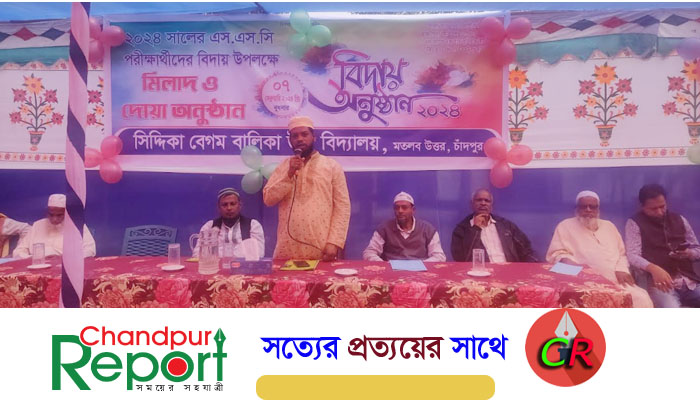 চাঁদপুরের মতলব উত্তর উপজেলার ছেংগারচর পৌরসভার ঐতিহ্যবাহী সিদ্দিকা বেগম বালিকা উচ্চ বিদ্যালয়ে ২০২৪ সালের এসএসসি পরীক্ষার্থীদের বিদায় অনুষ্ঠান উপলক্ষে আলোচনা সভা, মিলাদ ও দোয়া অনুষ্ঠিত হয়েছে।