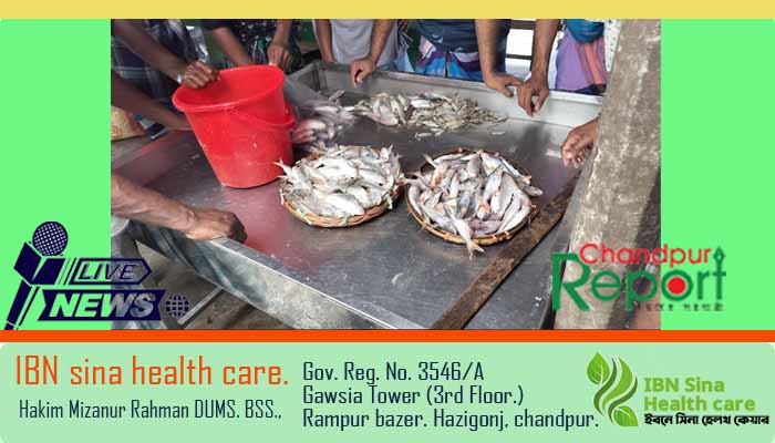 হাইমচর চরভৈরবী মাছের আড়তে প্রকাশ্যে জাটকা ও পাঙ্গাশের পোনা বিক্রি
