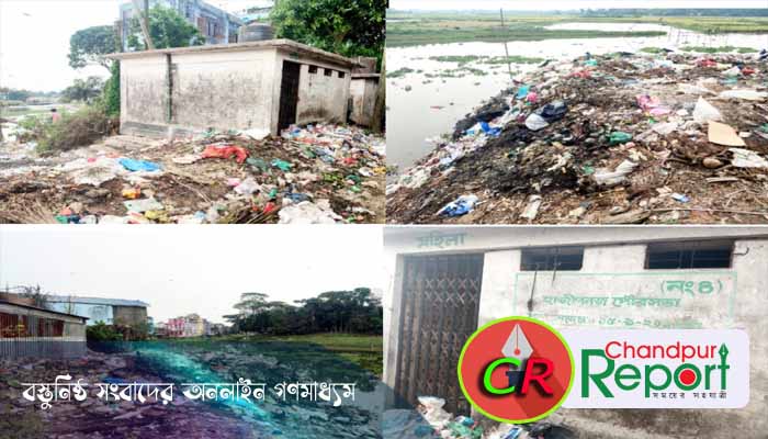 হাজীগঞ্জ বাজারের গণসৌচাগারের বেহাল দশায় পাশে ময়লা আবর্জনার স্তূপ হয়ে পড়ে আছে