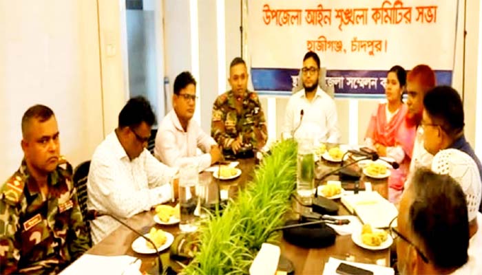 হাজীগঞ্জে মাসিক আইন-শৃঙ্খলা সভায় উপজেলা নির্বাহী কর্মকর্তা ইবনে আল জায়েদ হোসেনের সভাপতিত্বে বৃহস্পতিবার (২৯ মে) উপজেলা ই-সেন্টারে মাদক, কিশোর গ্যাং, ঈদুল আযহা উদযাপন, গরুর বাজার নিয়ন্ত্রণ ও হাজীগঞ্জ বাজারের যানজট নিরসন নিয়ে আলোচনা হয়।